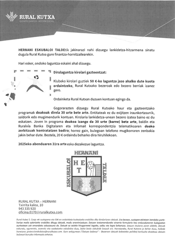 Rural kutxarekin lankidetza-hitzarmena sinatu da